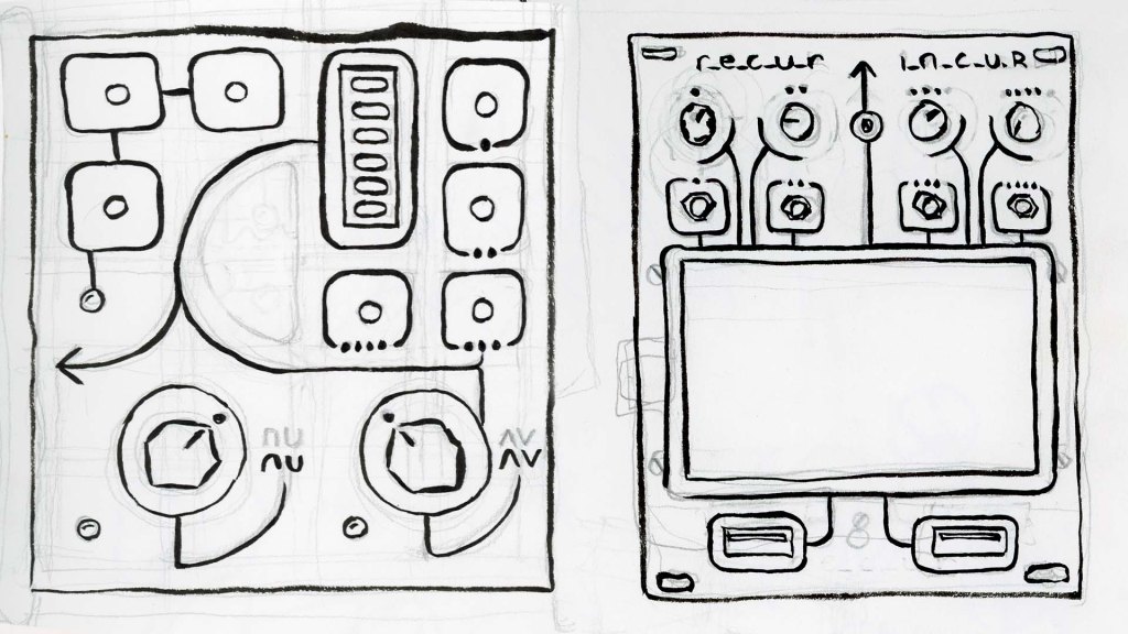 I dithered for a while about whether or not to make a eurorack faceplate to mount the r_e_c_u_r directly in my video synthesizer, but ultimately I decided to turn it into a stand alone box. Figuring out how to power the pi from the eurorack power supply seemed difficult, and rack space in the synth is at a pretty steep premium.